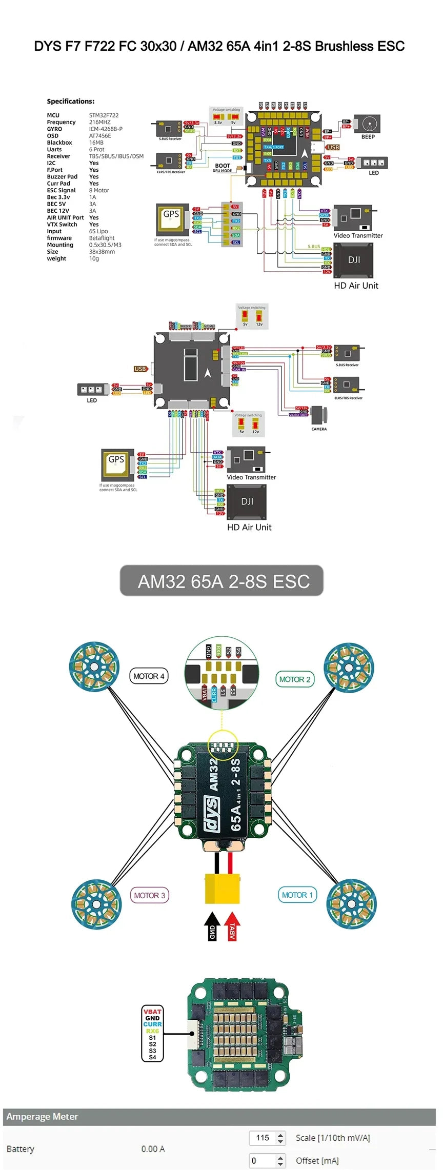 - F722 FC + 65A 2-8S AM_32 4-in-1 ESC with ICM42688P