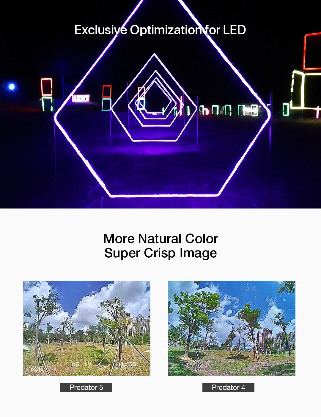 - Fast Mode Switch: Long Press Right Button to switch among DAY/CLOUDY/Night/LED