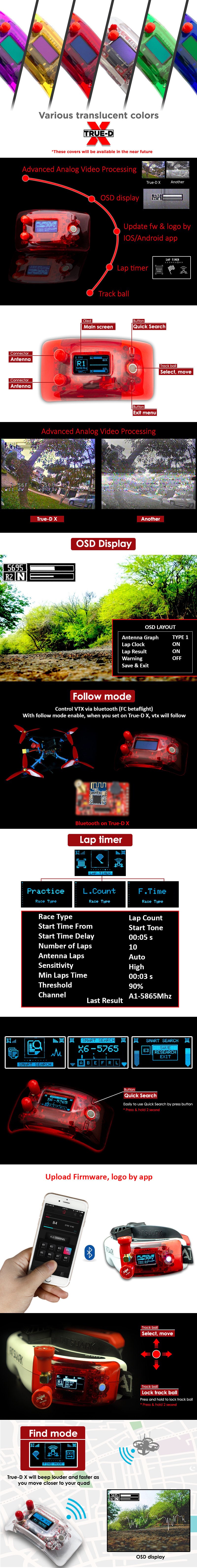 When flying with friends or in high multipath environments is where the signal processing stands out on these receiver modules. Apart from the fancy algorithms there are a few new features on this module like an OSD, in field firmware updates and follow mode. In addition this unit still packs all the features you love from the incredibly popular True-D module like Lap time, quick search, drone finder mode.