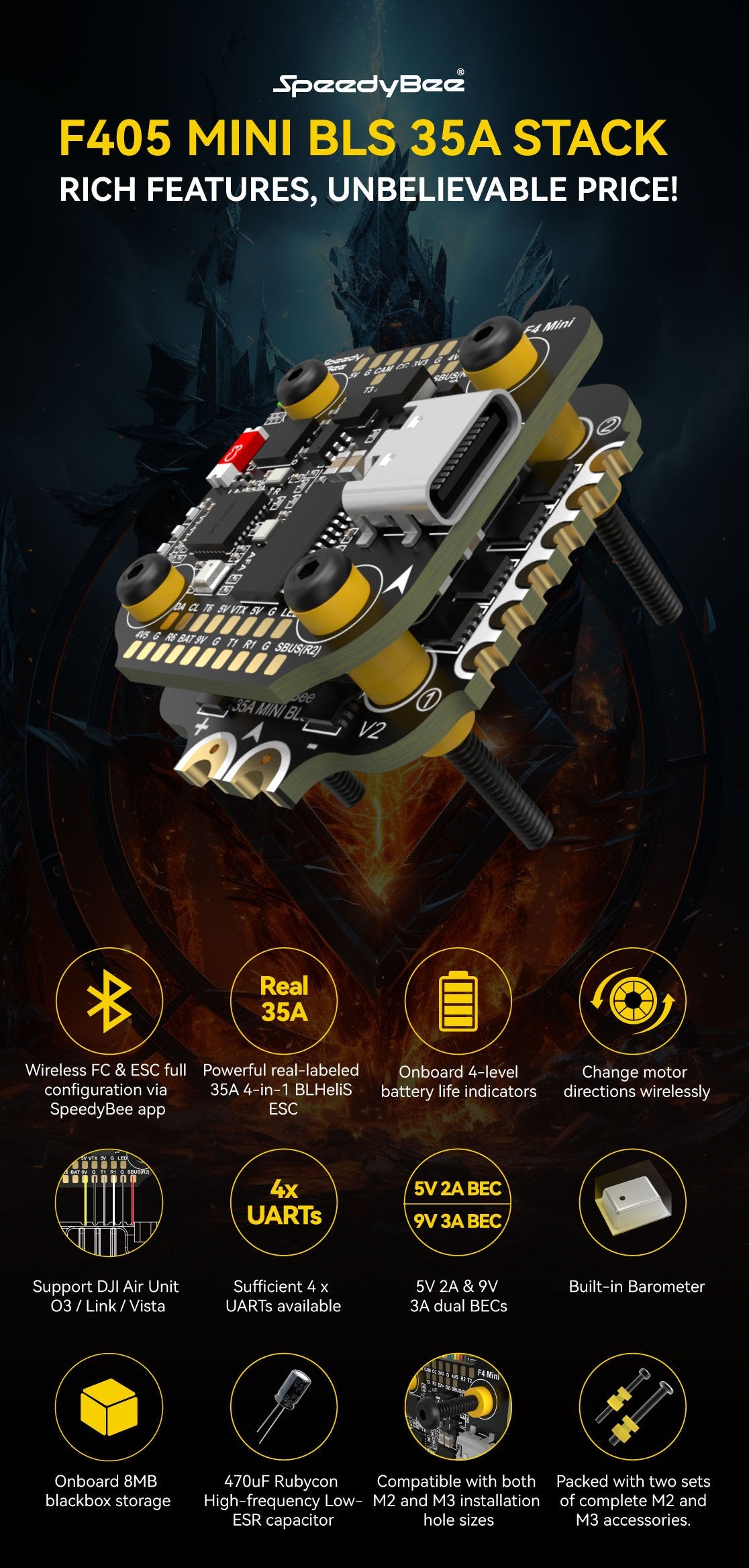 - 1x SpeedyBee F405 Mini BLS 35A 20x20 Flight Stack