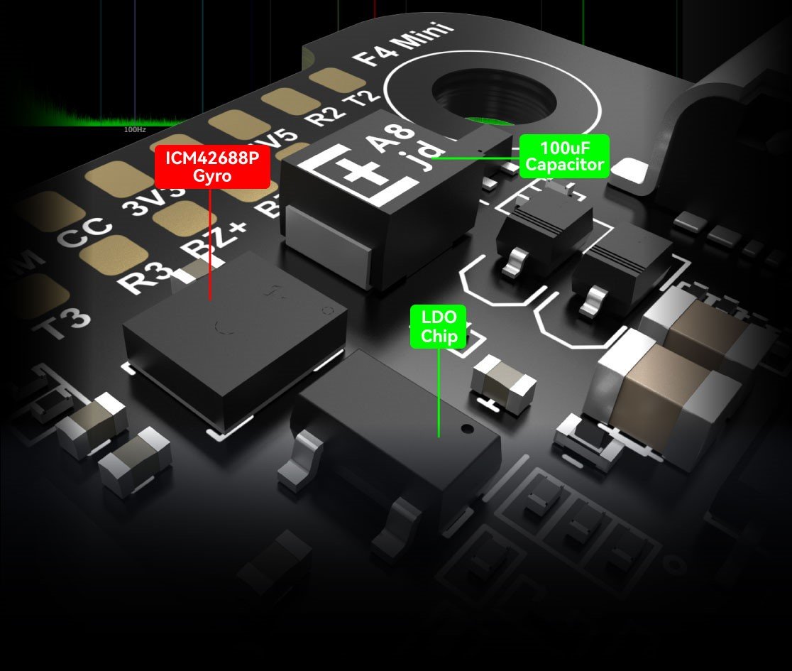 🚀 Gyroscope Mastery : The MaxLinear's LDO power supply chip ensures your gyroscope receives pristine power. Couple that with a hefty 100uF filtering tantalum capacitor, and what you get is a gyro that grooves to every nuance of your drone's dance in the skies.