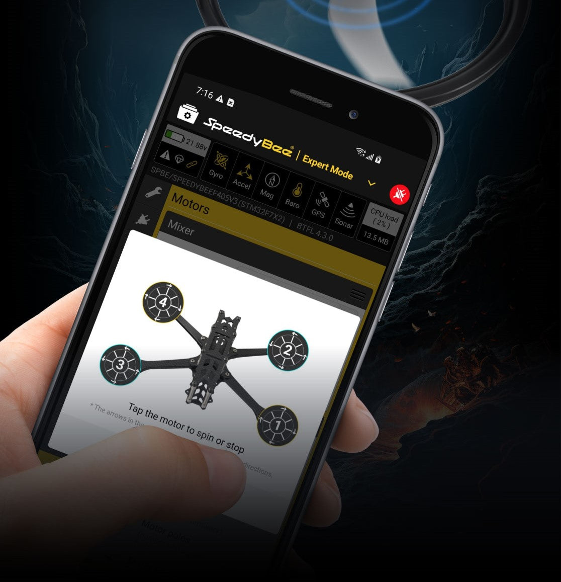 🌐 Wireless Wonders : Say hello to seamless wireless Betaflight tuning via built-in Bluetooth! And if manual configurations have you tied up in knots, just fire up the SpeedyBee app. Forget the USB hustle, get chummy with wireless ease, and bid a joyous adieu to wires!