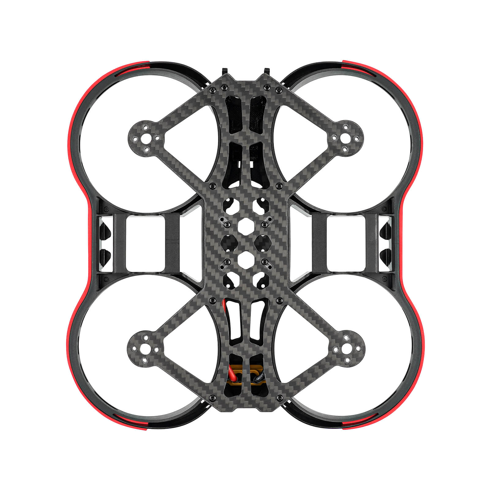 This is the frame kit for Pavo30 Pro. It is made of carbon fiber and designed with protective rings, which make the whole drone strong enough. With a fixed XT60 port, it is more convenient to connect with the battery.