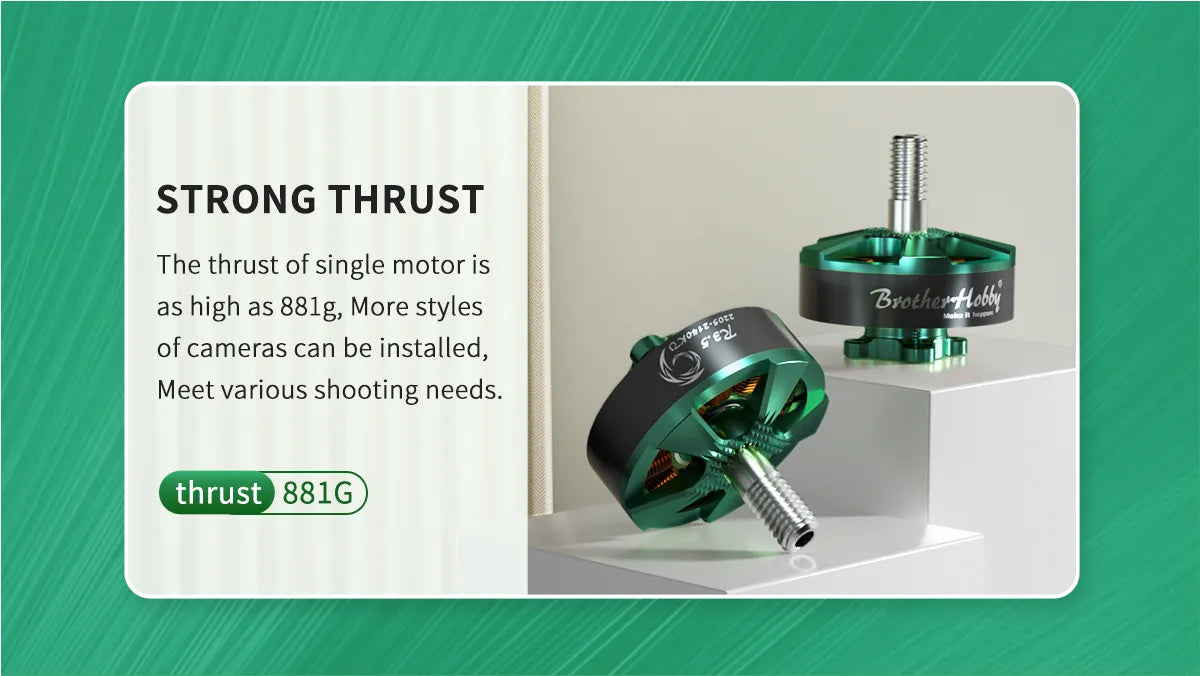 - Lightweight & Durable AI 7075 Base Casing and Bell Cap : Let's face it, crashes happen. But with this motor, they're just a blip on your flight radar.