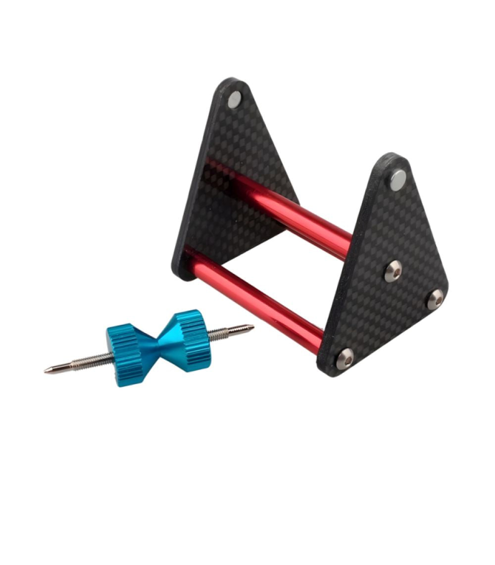 Please note that due to manufacturing tolerances you might need to balance the actual blue aluminium tapered nuts that hold your propeller on the balance as they may not be perfectly balanced. This can be easily done with a small metal file. It's suggested that you perform this step before trying to balance your propellers. The balancer comes disassembled.