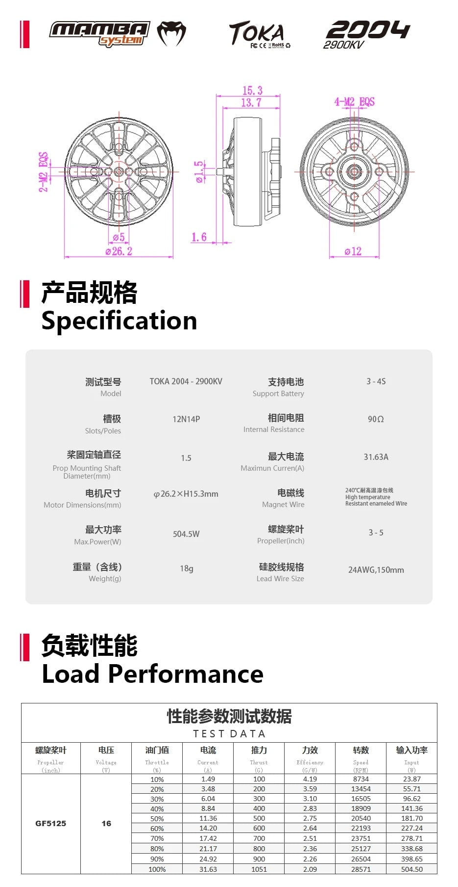 - 1x Diatone Mamba Toka 2004 Motor (1700KV or 2900KV options)