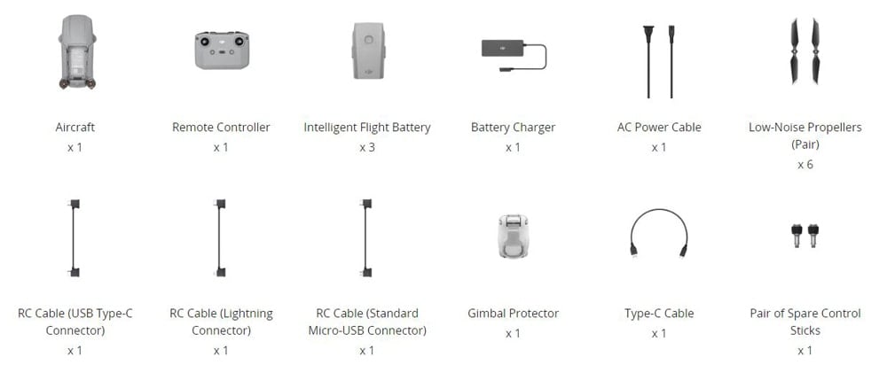 With the Fly More Combo, you get even more accessories with the Mavic Air 2. The accessory package is designed to help get you flying and filming right away, and to give you more capabilities when on location. Compared to the included accessories of the standard Mavic Air 2, the Fly More Combo gives you the following: