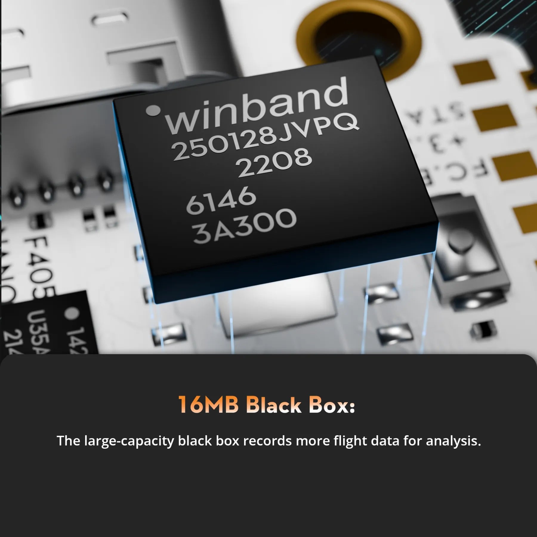 - 16MB Black Box - Flight data logging for better tuning and insights.