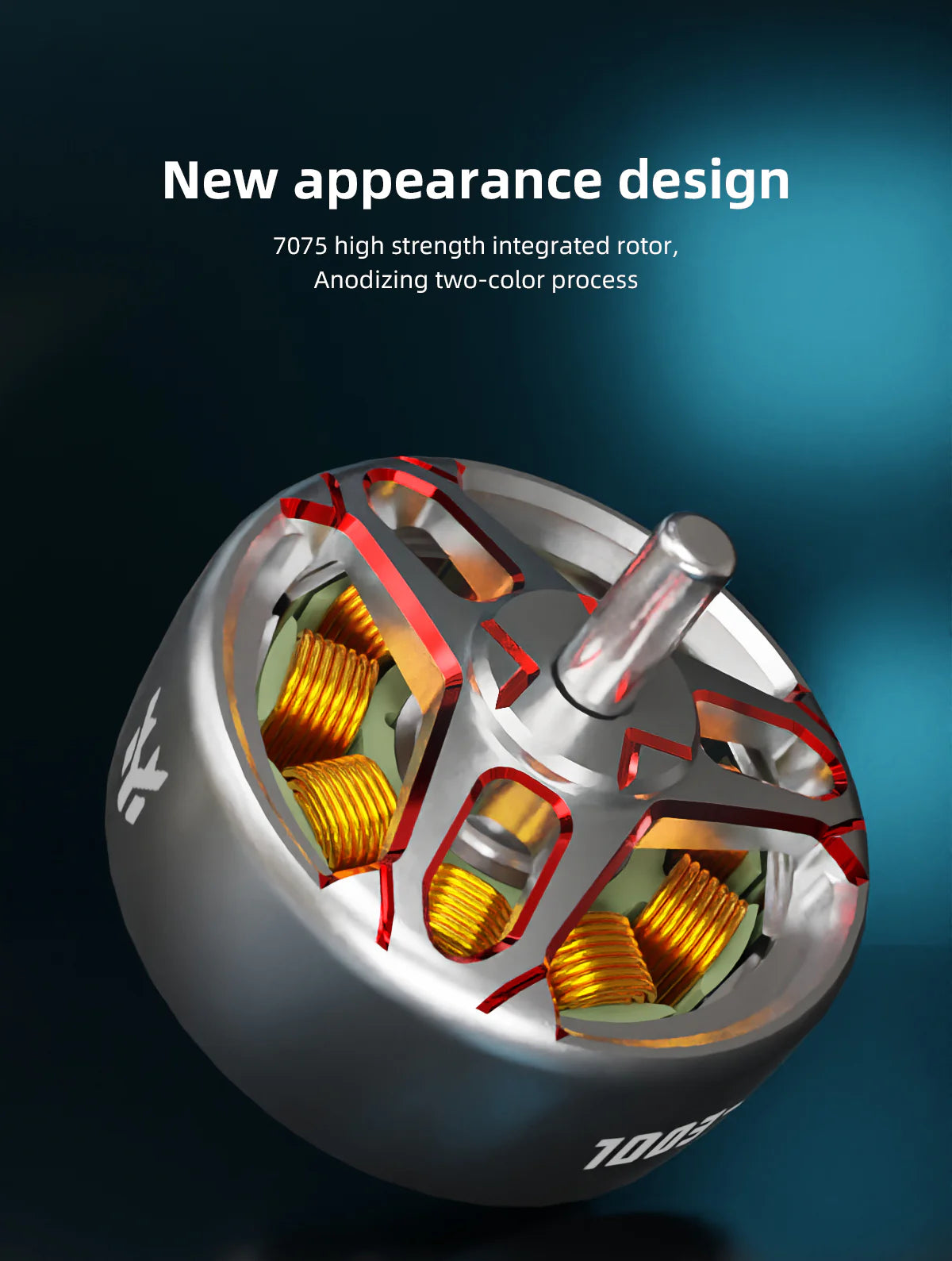 Whether you're weaving through tight spaces or pushing throttle punches, the SPECTER 1003 doesn't flinch. Featuring a 7075 aviation aluminum rotor, a low-loss stator, and custom N52H curved magnetic steel, this motor isn't just built; it's forged for performance. The 200° heat-resistant copper winding ensures stability in high-stress conditions, while optimized tuning provides smooth power delivery even during rapid throttle shifts.