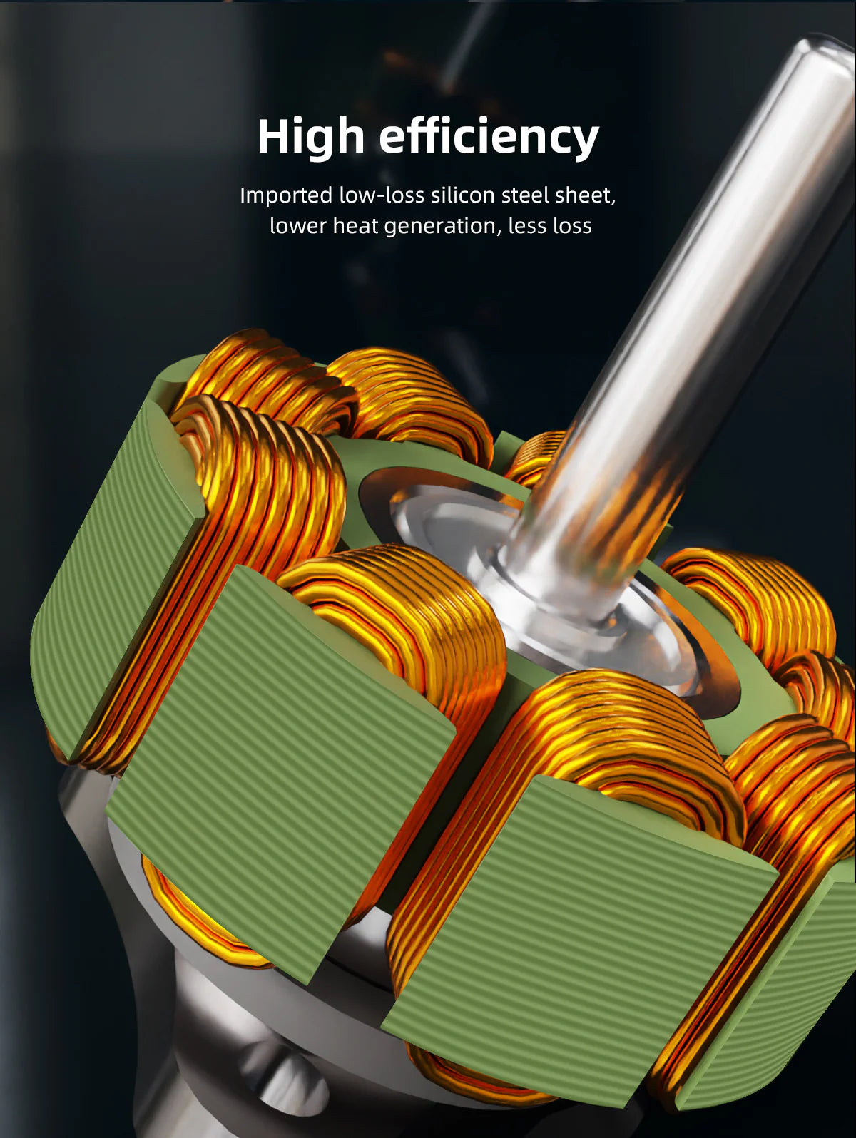 - Efficient Stator: Made with imported Kawasaki silicon steel to reduce heat and improve efficiency.