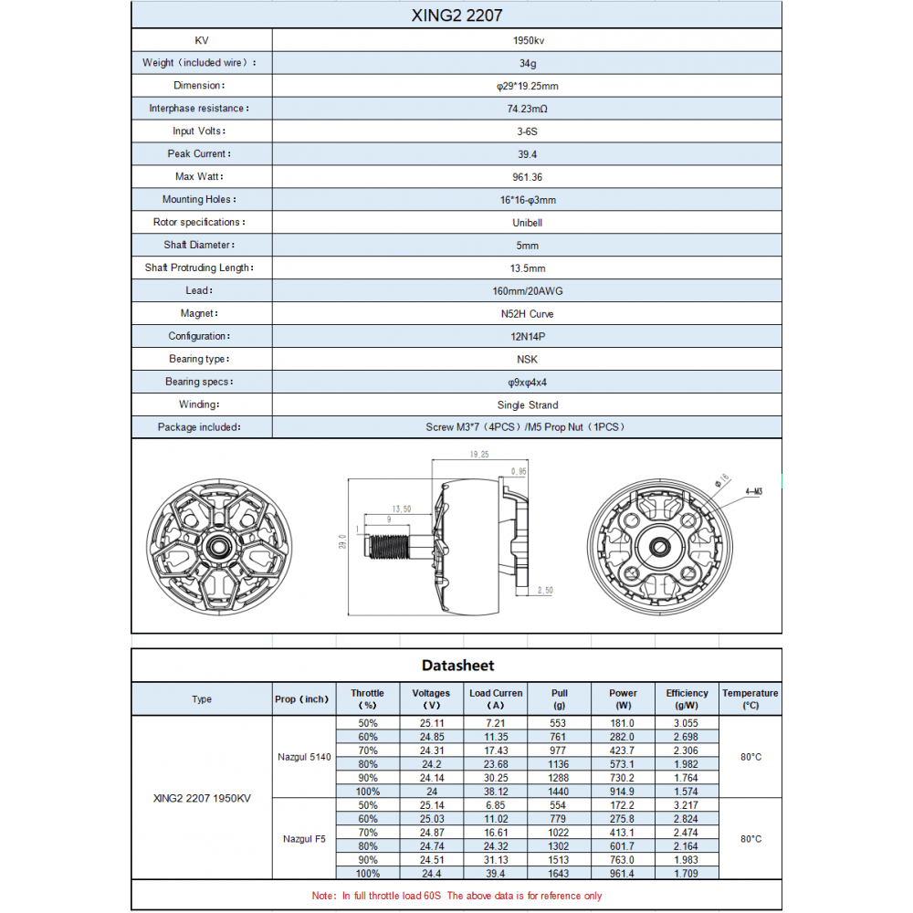 - 1x XING2 2207 RAINBOW Brushless Motor