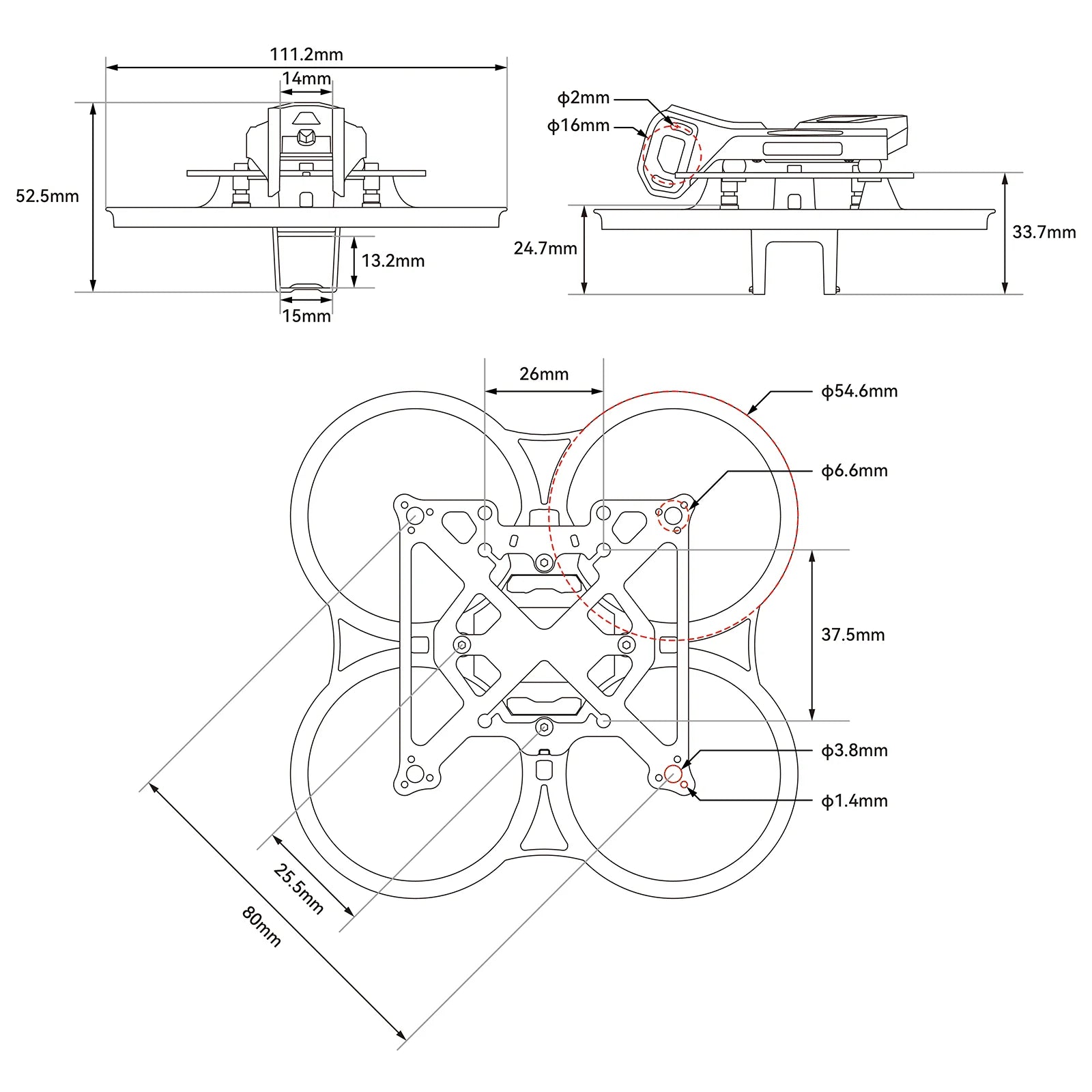 - Motor Mount Holes: 3 × M1.4 holes, φ6.6 mm spacing