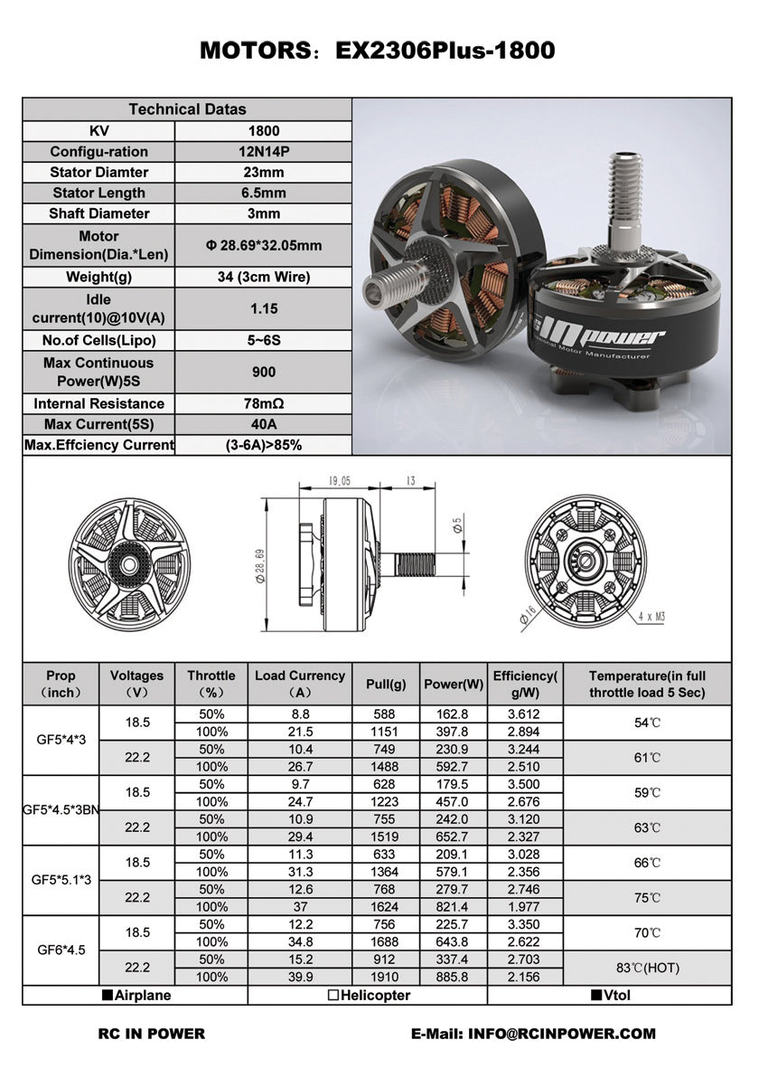 Here are some key highlights of the RCinpower EX2306-Plus brushless motor: