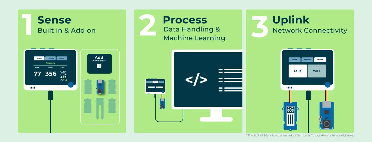 SenseCAP K1100 is an open-source prototype kit designed to incentivize the co-creation of IoT sensors to tackle real-world challenges. It is compatible with easy-to-start programming platforms like Arduino for customized coding. In addition, users can also train the Wio Terminal TinyML models using in-builds and Grove sensors.