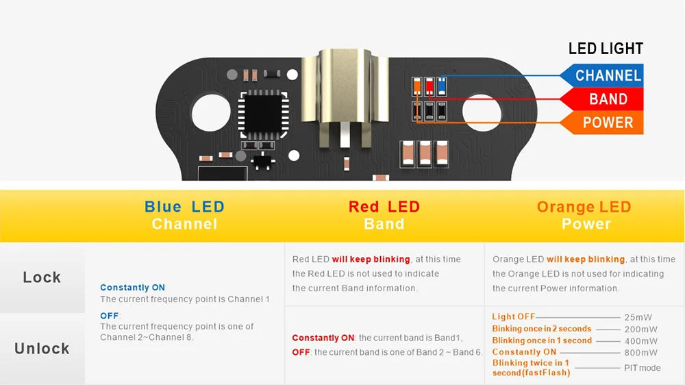 - Output Power: PIT/25mW/200mW/400mW/800mW
