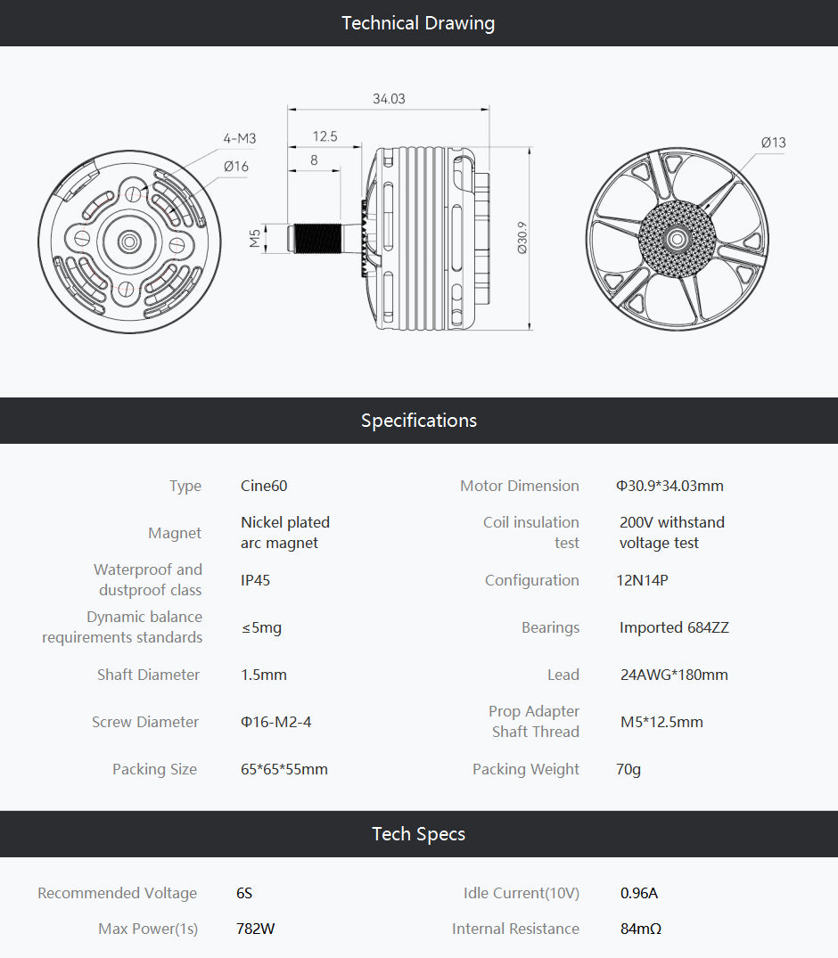 T-Motor Cine60 Cinematic 6s FPV Motor