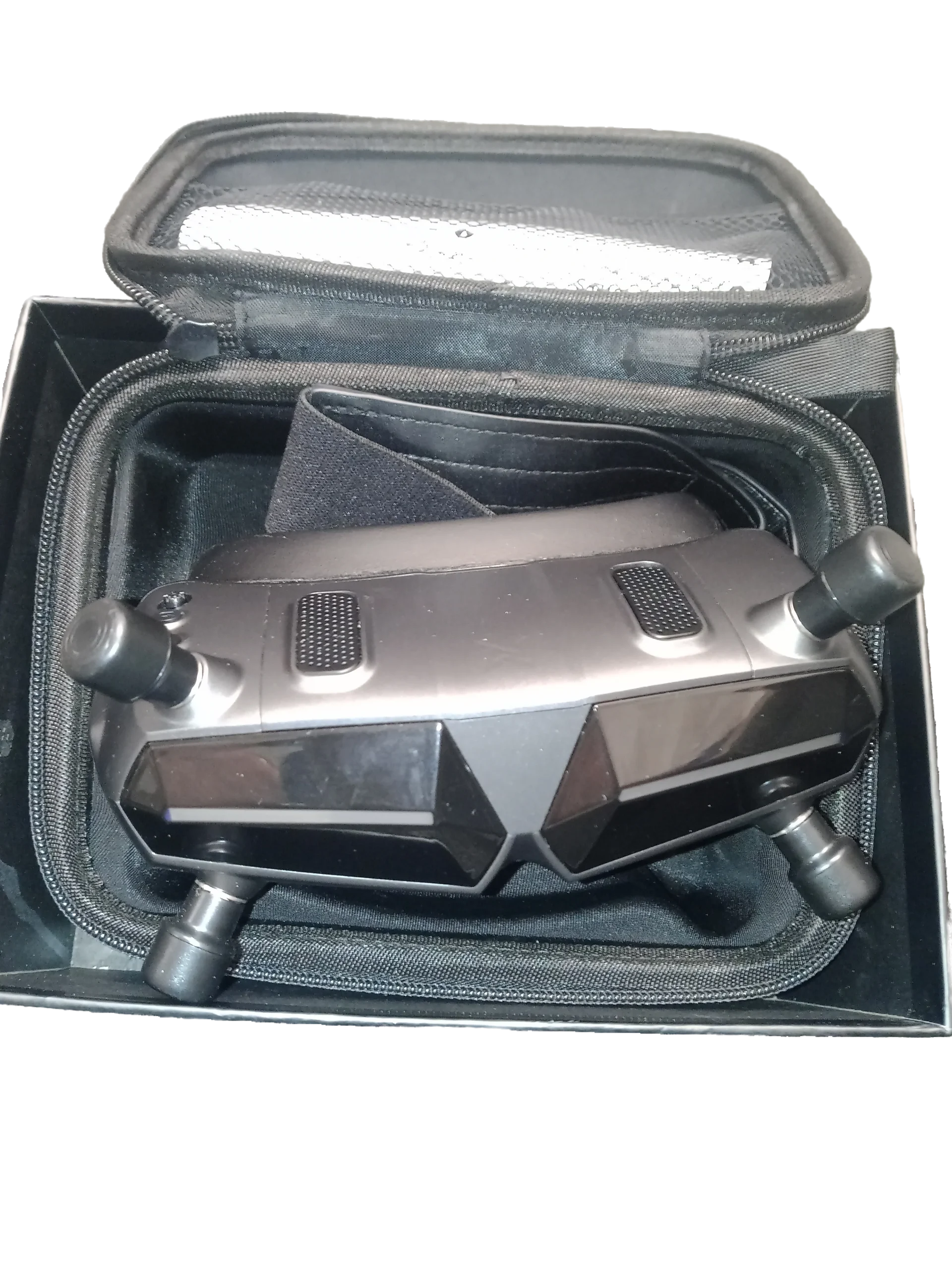 This listing is for a pair of Walksnail Goggles X FPV goggles, presented in fair, used condition. The goggles come securely housed in their original black zippered carry case, designed for safe transport and storage. As seen in the image, the goggles feature their distinctive dark grey/black finish with angular front displays and are equipped with a head strap for comfortable wear. Two antenna ports are visible on the front, each with a protective cap/dummy antenna. While the goggles themselves appear well-maintained, please note that, as described, some accessories are missing from the original set. This makes it an ideal opportunity for an FPV pilot looking for a functional Walksnail Goggles X headset at a reduced price, assuming they have or can acquire the necessary supplementary accessories.